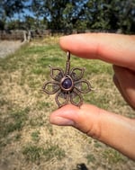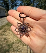 Made with bare copper wire that has been oxidized to give that antiqued finish. Comes with a black adjustable cord necklace.