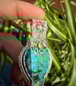 This beautiful pendant is wrapped in a silver plated wire with a labradorite accent. Comes with an adjustable black cord necklace