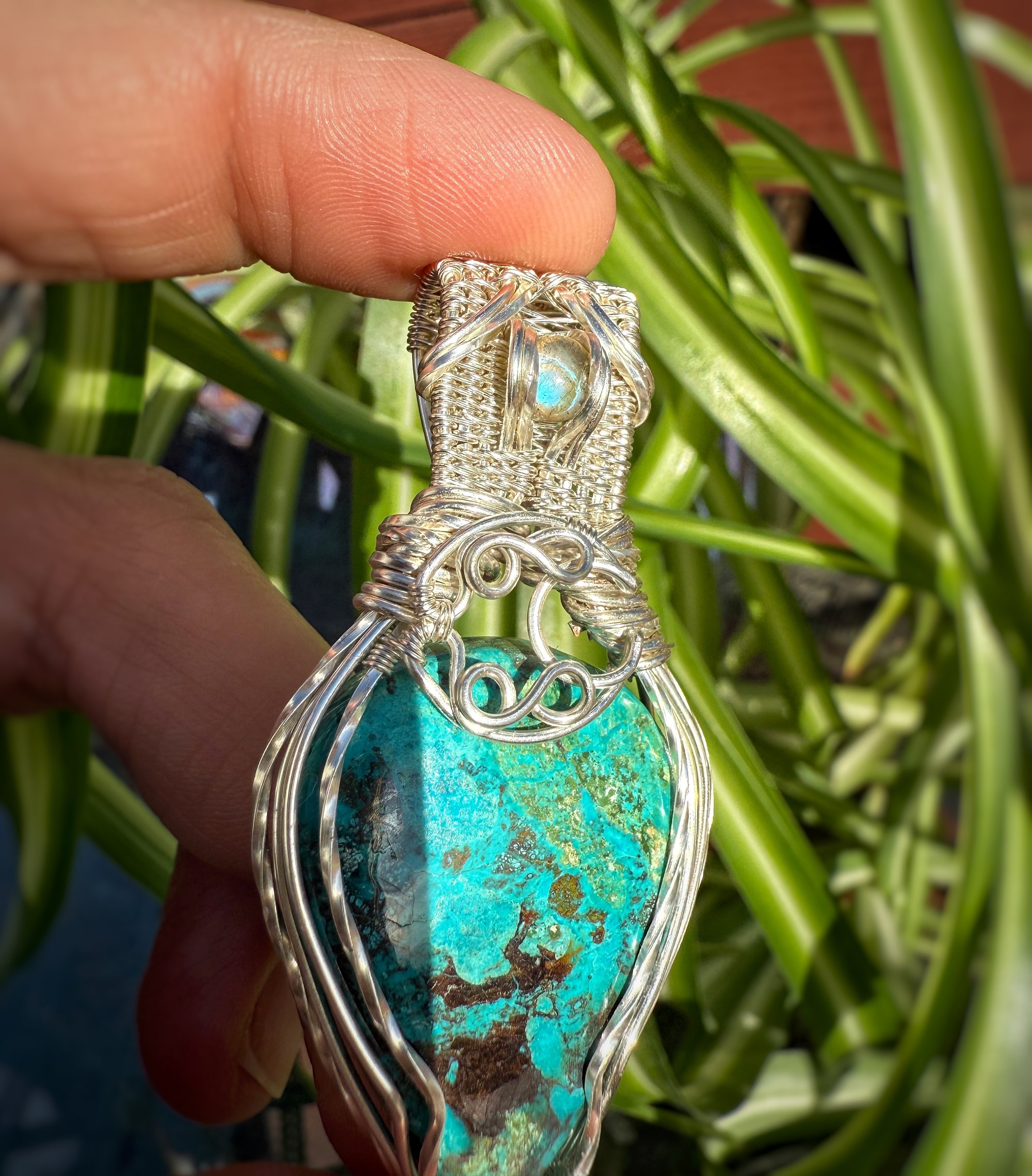 Chrysocolla Moon Pendant